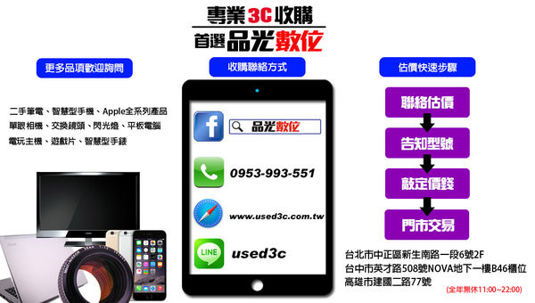 拿來品光數位就對了,品光數位,在台北、台中、高雄都有實體店面,專門做二手3C器材的交換買賣,安心有保障