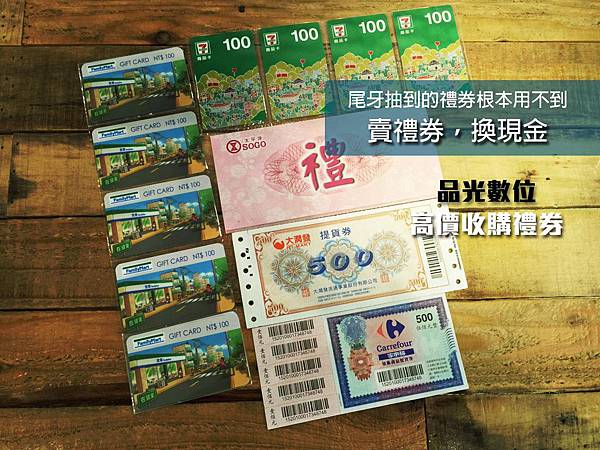 別擔心,品光數位專門收購禮券,賣禮券換現金,現金卡實在! 禮券不限金額大小都可收購喔