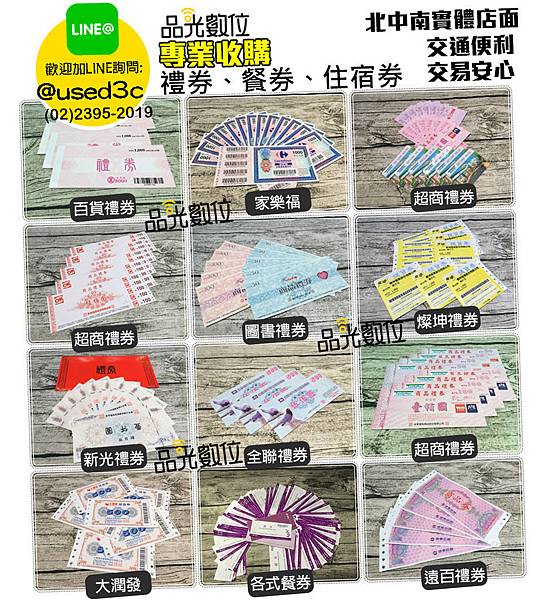 品光數位在台北、台中、高雄設有店面據點,高價收購各式禮券,且金額不限